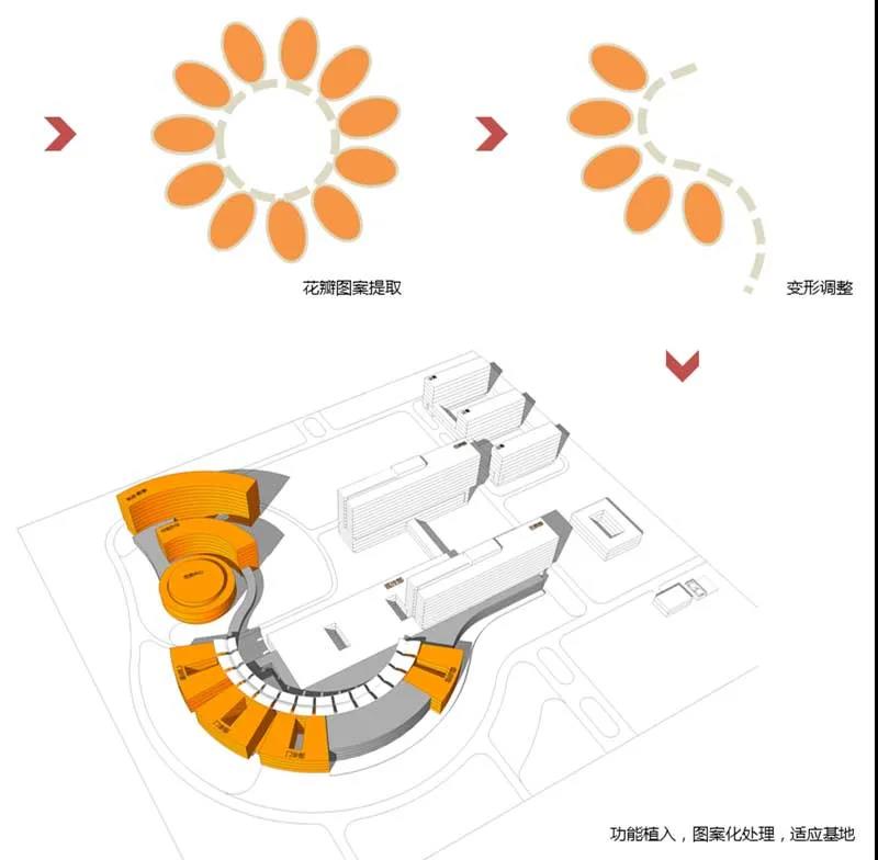 山西省兒童醫(yī)院新院區(qū)項目在方案設計方面力求展現(xiàn)對患兒視覺感知的關懷,借用太原市市花——菊花的意向來表達對城市的致意,并呼應了兒童天性活潑與率真的特征。整體方案在場地中的構圖充分展現(xiàn)出活潑性、靈活性與恰當性,同時又充分考慮到了醫(yī)療功能的合理安排與工藝流線的緊湊性。
