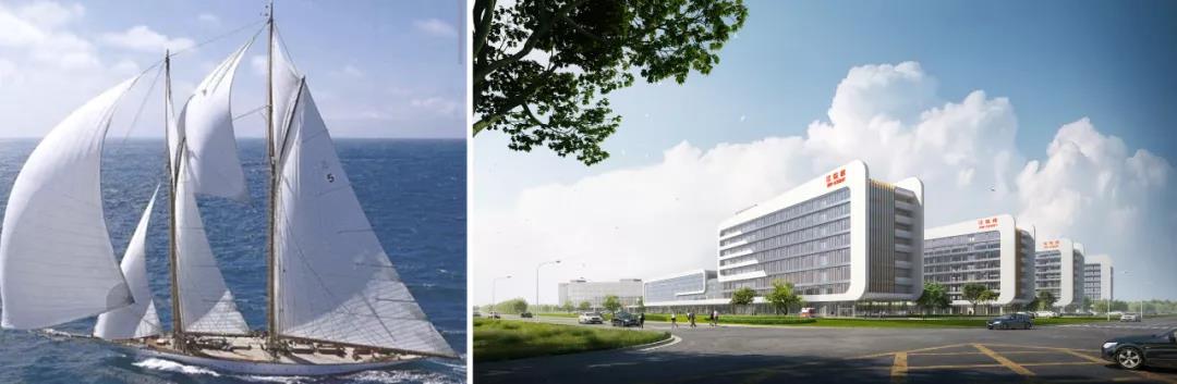 紹興已有2500多年建城史,是著名的水鄉(xiāng),素有“文物之邦、魚米之鄉(xiāng)”之稱。紹興院區(qū)基地周邊環(huán)繞著景觀水系,以水為源泉,提出“療愈港灣,揚帆起航”的理念。舒展的??浦行木拖褚凰宜彝?坑谒兜纳?,把紹興的歷史形象延展成現(xiàn)代醫(yī)療的療愈港灣,形成歷史與現(xiàn)代的融合。
