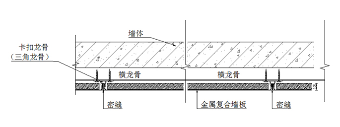 卡扣龍骨采用開模定制的鋁型材,特殊的卡扣結構使得墻板之間緊固,達成表面看不到固件的密拼效果。
