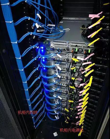 同一IDC,同一規格機架,布線方式應總體一致,方便日常運維。核心網絡設備,內網接入設備,管理網接入設備等不同角色的網絡設備布線都應整齊,光纖和網線不應該擋住網絡設備進出風口,不宜預留到機架底部太長,光纖和網線上貼的標簽要清晰。網絡設備正面插光纖和網線的方式應盡可能保持一致,對光纖和網線進行摁綁,網絡設備背面電源線和網線整齊不雜亂,強弱線纜分開,具有整體感。
