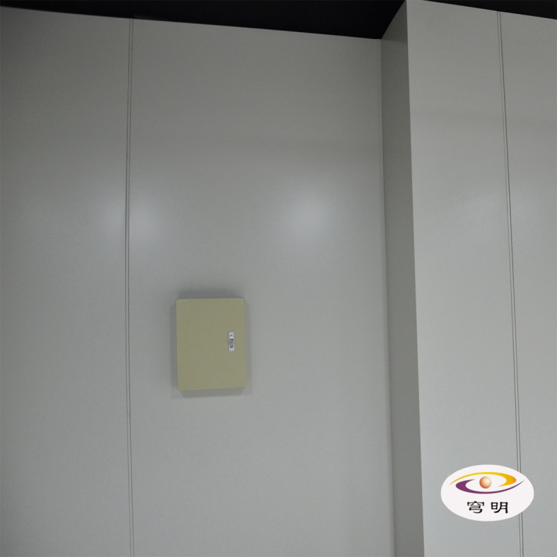 2、由一側(cè)開(kāi)始安裝機(jī)房彩鋼板,依次安裝,相連板間距12mm用扣件螺絲固定,隔板之間采用寬度12mm壓條收邊,標(biāo)準(zhǔn)單元墻板均可互換。